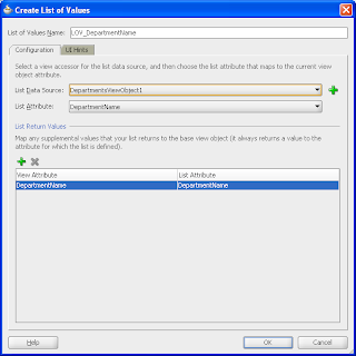 Click the Green Add Button related to List Of Values:DepartmentName as shown in picture.