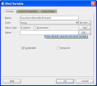 Now I should create the view criteria to create the criteria and create the bind variable to pass the selected data from list of values.