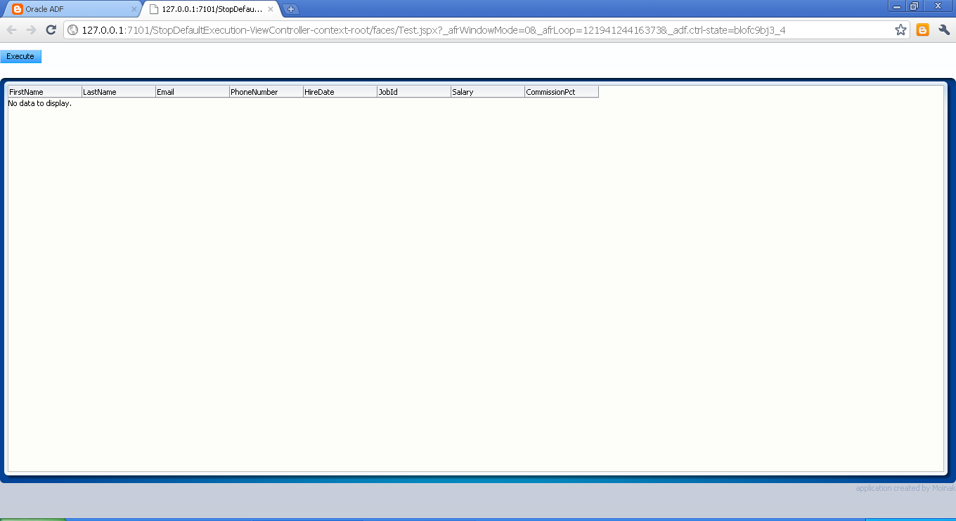 Now if you run the page you will see that the VO is executed on First Page Load and it is showing data in table.