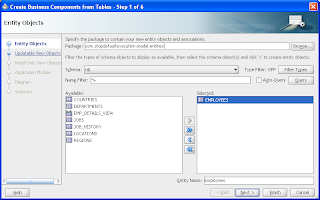 Then create the ADF Business Components to create Entity Object, View Object and Application Module in Model project