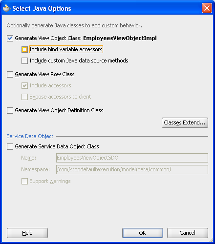 To stop that first create the ViewObjectImpl class for me it is EmployeesViewObjectImpl.java